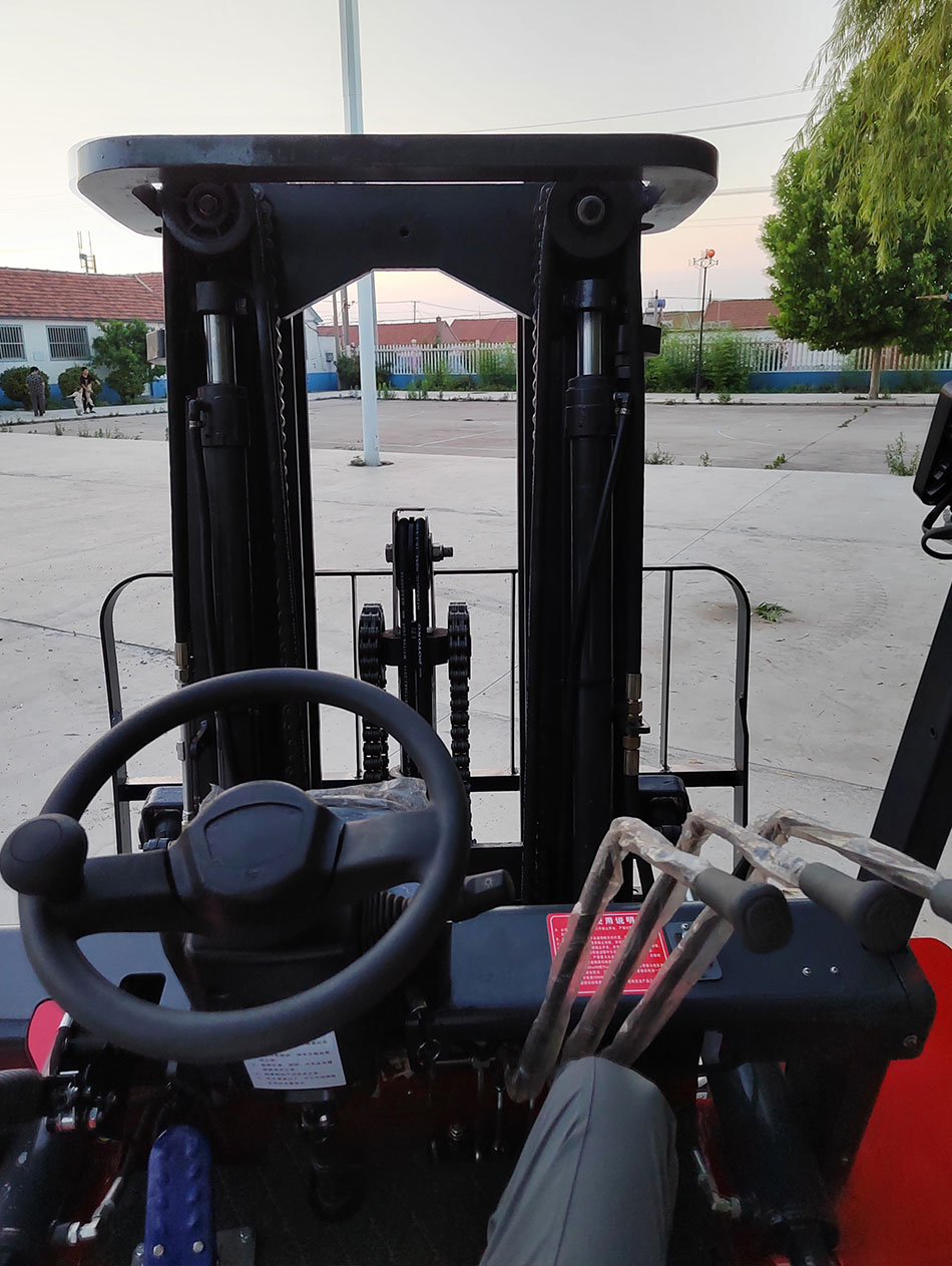 3.宽视野门架以及加宽的挡货架和独特的边管设计,驾驶员具有广阔的视角,故本叉车适合在室内、户外、野外等各种工作环境进行货物装卸、堆垛和短途运输作业。